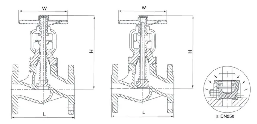 Bellow Seals Globe Valve Outline and connecting measurement